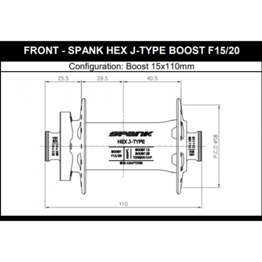 Nabe Vorne SPANK HEX 15/20 mm Boost 32 Loch Violett