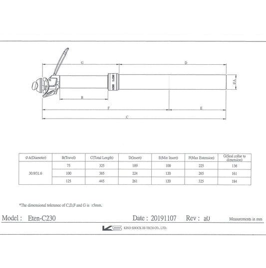 KS KIND SHOCK ETEN REMOTE teleskopische Sattelstütze