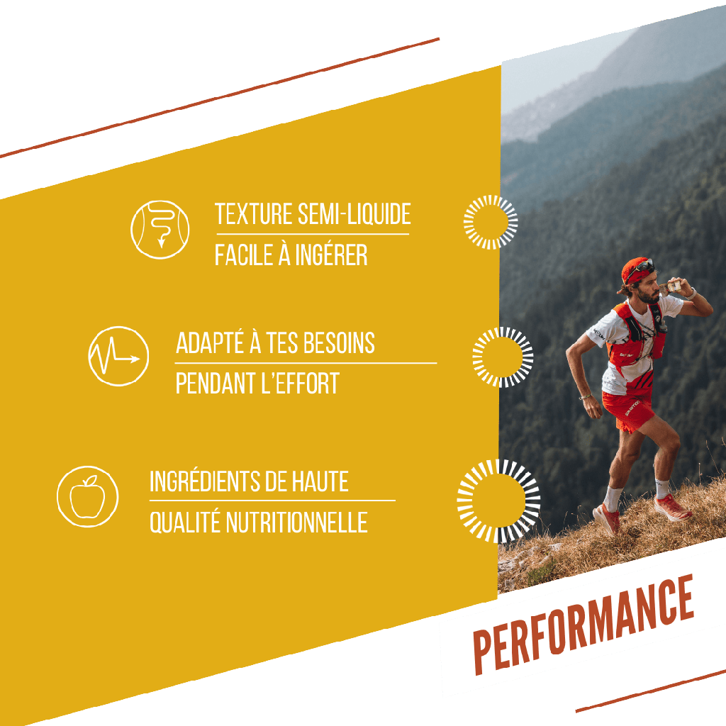 Dieses Bio-Püree ist glutenfrei, vegan, ohne Zuckerzusatz und hat einen moderaten glykämischen Index. Es sorgt für eine progressive Energiezufuhr ohne Durchhänger und einen hohen Verdauungskomfort während Ihrer sportlichen Betätigung. Die Trinkflasche besteht zu 85 % aus pflanzlichem Material (Zuckerrohr) und hat einen wiederverschließbaren Verschluss. Und schließlich verfügt sie über eine kompakte Verpackung, die sich leicht in die Hand nehmen und in die Tasche stecken lässt.