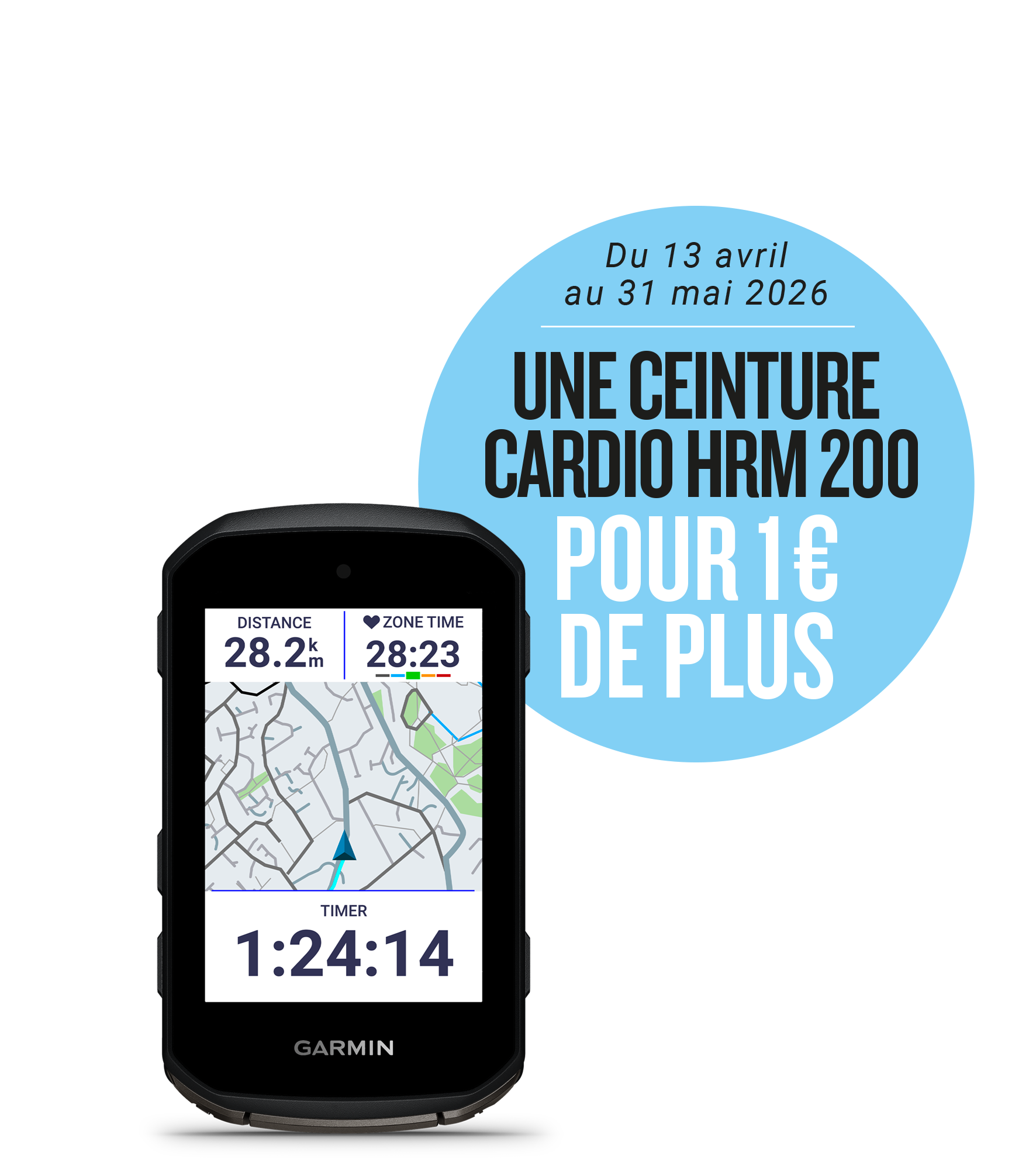 GARMIN EDGE 850 GPS + Ihr GARMIN HRM 200 Kardio-Gürtel für 1€ mehr