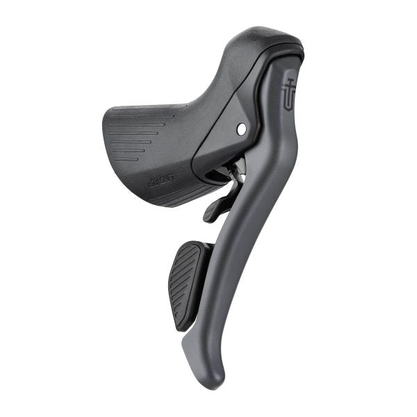 Das Cockpit wurde für konisch zulaufende Lenker konzipiert und bietet eine optimierte Ergonomie. Die abgerundeten Cockpits reduzieren Druckstellen, während die strukturierte Abdeckung auch bei Nässe für einen festen Griff sorgt. Der Bremshebel mit hohem Drehpunkt verbessert die Hebelwirkung und erhöht die Bremsleistung durch einen optimierten Kabelzug. Die Brems- und Schalthebel bleiben für eine präzise Einstellung völlig unabhängig.