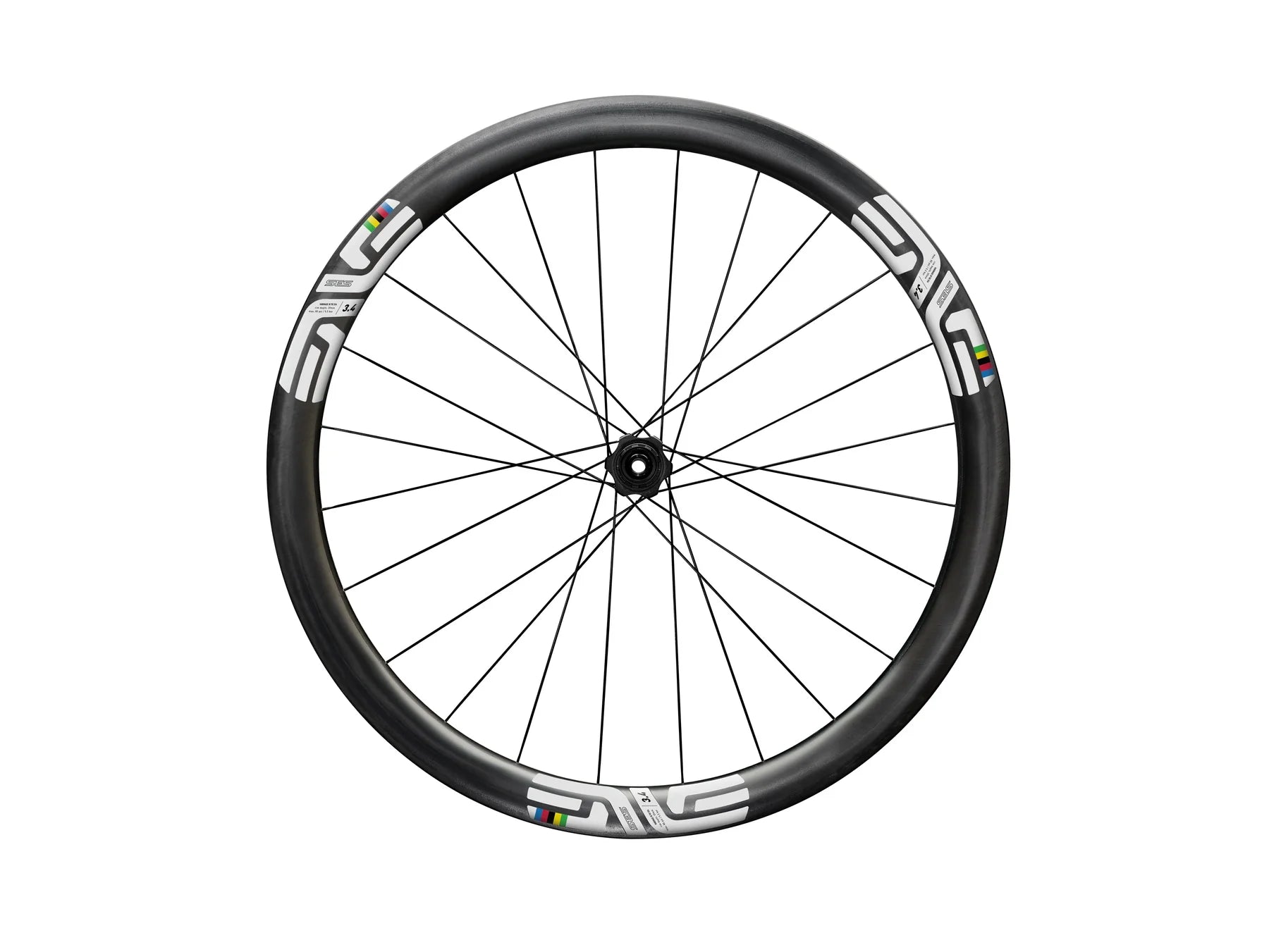 Die Hinterradfelge, die aus der Weiterentwicklung des SES 3.4 AR hervorgegangen ist, hat ein Profil von 42 mm und eine Innenbreite von 25 mm. Dieses großvolumige Design verbessert die Aerodynamik bei breiten Reifen und erhöht gleichzeitig die Stabilität und das Vertrauen bei technischen Abfahrten. Die aktualisierte Carbon-Laminierung ermöglicht eine deutliche Gewichtseinsparung, ohne die Steifigkeit zu beeinträchtigen.