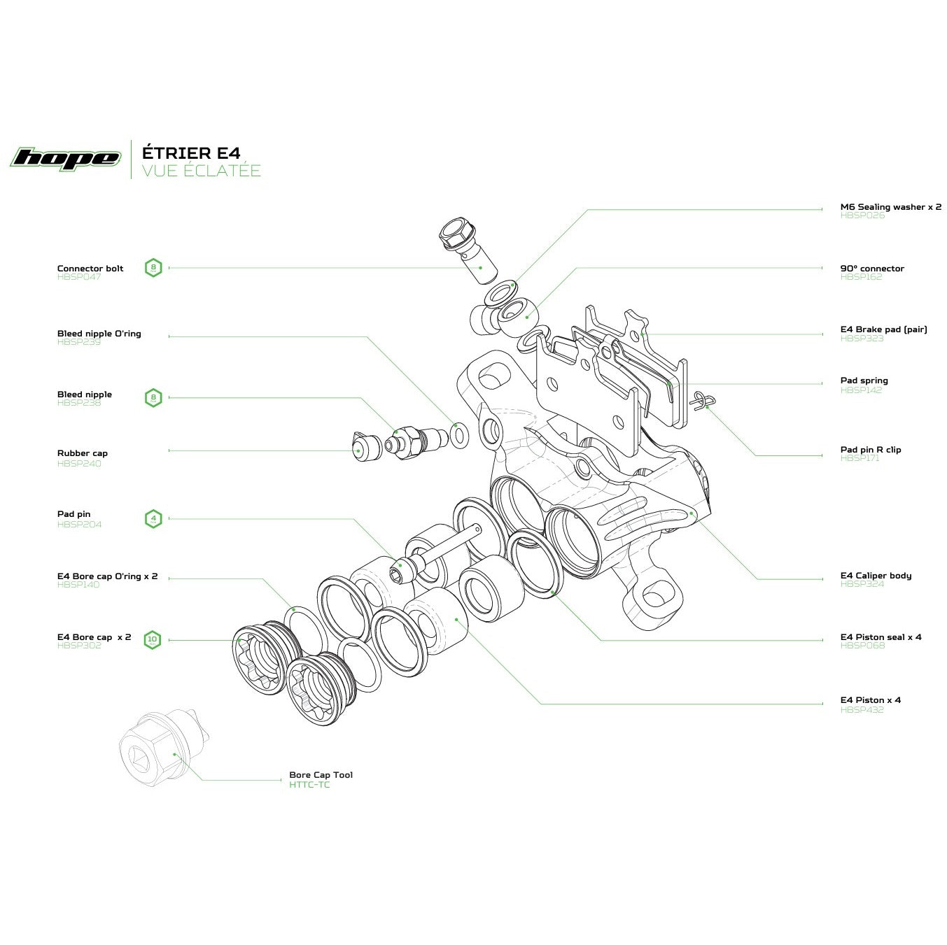 Durch die Verwendung von DOT 5.1-Bremsflüssigkeit und mit Aluminiumschrauben zur Befestigung der Bremsbeläge ist die HOPE E4 ist ein langlebiger und leistungsstarker Bremssattel, der in England mit größter Sorgfalt hergestellt wird.