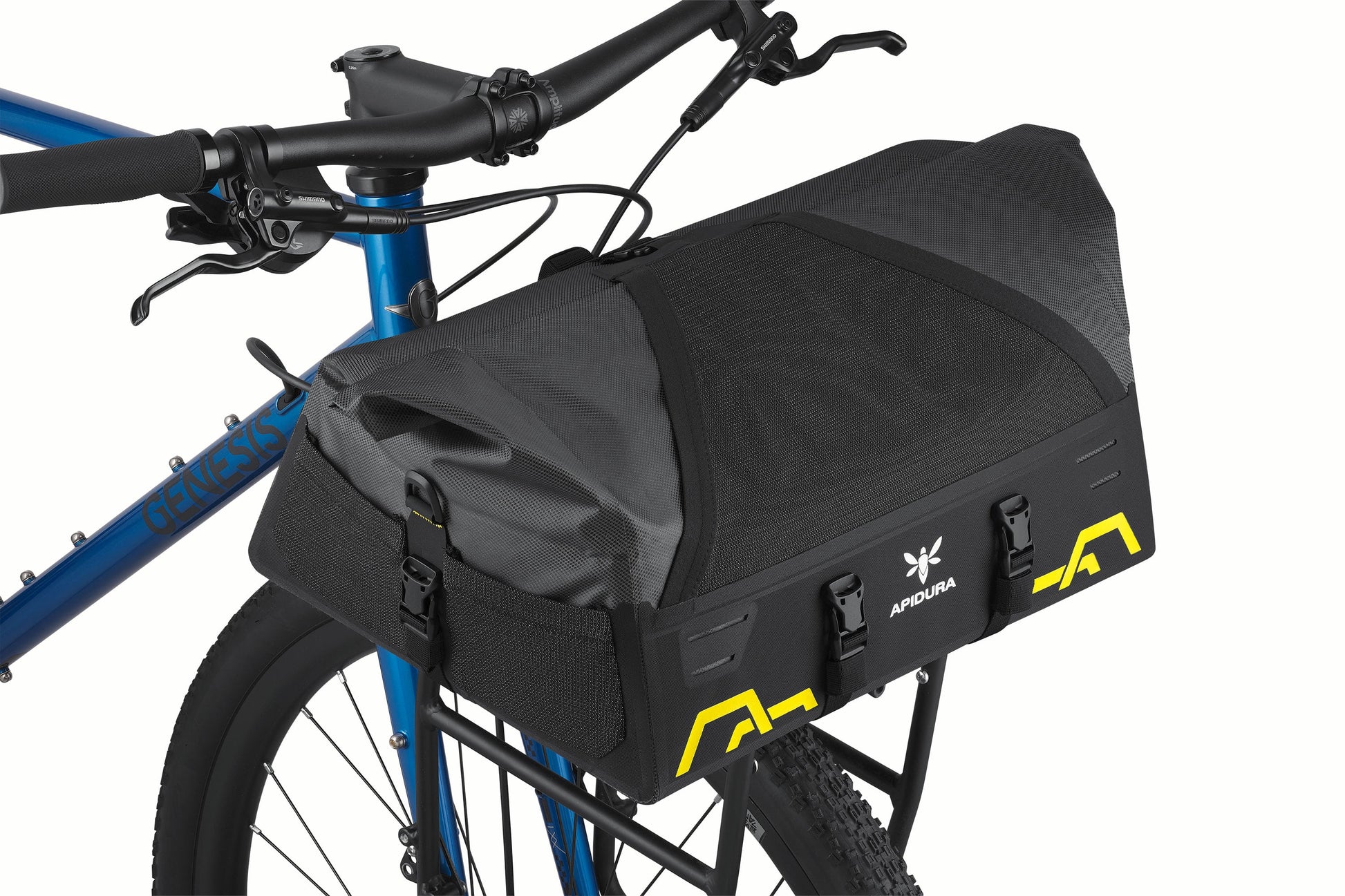 Die APIDURA EXPEDITION FRONT RACK PACK Lenkertasche ist der ideale Verbündete für Langstreckenabenteuer. Diese Tasche wurde für die Befestigung am Vorderradgepäckträger oder in einem Korb konzipiert und erhöht die Transportkapazität erheblich, ohne die Stabilität des Fahrrads zu beeinträchtigen. Die verstärkte Struktur und die robusten Gurte sorgen für einen sicheren Halt, während die Silikon-Grips für zusätzliche Griffigkeit sorgen und so einen zuverlässigen Transport auch auf anspruchsvollstem Gelände gewährleisten.