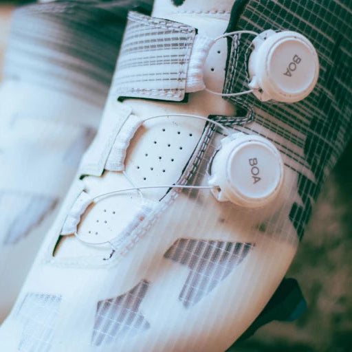 Der patentierte Matryx®-Gewebe sorgt für eine hervorragende Unterstützung des Fußes und fördert gleichzeitig eine perfekte Belüftung. In Kombination mit einem Sohle aus Carbon-Verbundstoffsorgt sie für eine optimale Kraftübertragung, ideal für Sprints oder Anstiege. Das System BOA® Fit mit doppeltem Rädchen L6 ermöglicht eine präzise und unabhängige Anpassung in zwei Zonen des Fußes und passt sich so jeder Morphologie an.