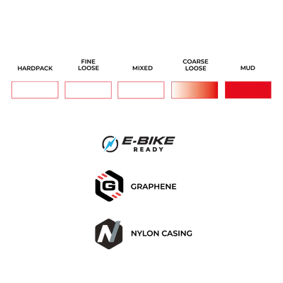 Entwickelt mit der mit Graphen angereicherte Endurance-FormelDer Reifen bietet eine hervorragende Haltbarkeit, konstanten Grip und zuverlässige Leistung unter allen Bedingungen. Der Endurance-Karkasse aus 100 TPI Nylon, kombiniert mit einem Seitenverstärkung und eine PannenschutzgürtelDas System bietet eine hohe Widerstandsfähigkeit gegen scharfe Kanten und eine bemerkenswerte Stabilität, selbst unter hohem Druck.